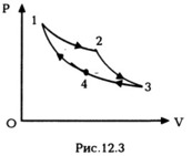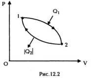 Пусть газ (рабочее тело) находился вначале при температуре нагревателя Т! и его состояние изображалось на диаграмме P-V точкой 1 (рис. 12.3).