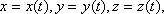 2) Кинематическое уравнение движения: вид функциональной зависимости всех трех ее координат от времени: