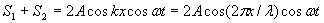 Два знака в аргументе косинуса соответствуют двум направлениям распространения волны. Соотношения между круговой частотой - ω, волновым числом - k, длиной волны - λ, скоростью звука - υ.