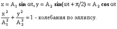 | - среднее значение на отрезке Для того, чтобы найти положение любой точки необходимо найти предел: - частная по направлению. Поскольку направление S было выбрано произвольно, то можно представить это по координатам: Эта функция представляет проекции вектора силы на координатные оси. 4) Потенциальные энергии тяготения и упругих деформаций Потенциальная энергия упругой деформации характеризует взаимодействие между собой частей тела. Потенциальная энергия в поле тяготения Земли вблизи поверхности приближённо выражается формулой: Ep = mgh, где Ep — потенциальная энергия тела, m — масса тела, g — ускорение свободного падения, h — высота положения центра масс тела 5) Уравнение изменения механической энергии Изменение кинетической энергии системы равно суммарной работе всех сил, действующих на тела этой системы: DEк = Aпот.с.+ Aнепот.с.+ Aвнеш.с. Изменение потенциальной энергии системы равно работе потенциальных сил с обратным знаком: DEп = - Aпот.с. Изменение полной механической энергии равно: DE = DEп + DEк Из уравнений получим, что изменение полной механической энергии равно суммарной работе всех внешних сил и внутренних непотенциальных сил. DEк = Aвнеш.с.+ Aнепот.с. 6) Закон сохранения механической энергии и его связь с однородностью времени. Полная механическая энергия замкнутой системы тел, между которыми действуют только консервативные силы, остаётся постоянной. Закон сохранения механической энергии связан с однородностью времени, однородность времени проявляется в том, что законы движения замкнутой системы не зависят от выбора начала отсчета времени. Колебания и волны Лекция 4. Уравнение гармонических колебаний. Представление гармонических колебаний на векторной диаграмме. Сложение гармонических колебаний одного направления равных и близких частот. Сложение взаимно перпендикулярных гармонических колебаний равных и кратных частот. 1) Свободные незатухаюшие колебания. Колебания, при которых изменения физических величин происходят по закону косинуса или синуса (гармоническому закону), наз. гармоническими колебаниями. , где ω – частота колебания, xm – амплитуда колебания, φ0 и φ0’ – начальные фазы колебания. 2) Представление гармонических колебаний на векторной диаграмме. Для представления величины x, изменяющейся по гармоническому закону x = A·cos(w·t + f0), изобразим на произвольной оси X вектор r, исходящим из точки O. Пусть длина данного вектора равна амплитуде A, а угол с осью X равен фазе Ф. Допустим, что вектор r вращается вокруг точки O с угловой скоростью w против часовой стрелки, что соответствует положительному направлению отсчета углов. Тогда угол между вектором и осью, равный фазе колебаний, будет изменяться по закону Ф(t) = w·t + f0. Значение физической величины x в любой момент времени зададим как проекцию вектора r на ось Х: rx = x = A·cos(w·t + f0).Итак, скалярное гармоническое колебание можно представить как проекцию вектора с амплитудой A, который вращается вокруг закрепленной точки O с постоянной угловой скоростью w. 3) Cложение взаимно перпендикулярных гармонических колебаний равных и кратных частот. Звуковое давление – давление, оказываемое звуковой волной на препятствие. P = 2πfρcA где Р — максимальное акустическое давление (амплитуда давления); f — частота; с — скорость распространения ультразвука; ρ — плотность среды; А — амплитуда колеба