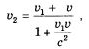 1) Релятивистический закон сложения скоростей, направленных вдоль одной прямой