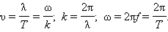 Два знака в аргументе косинуса соответствуют двум направлениям распространения волны. Соотношения между круговой частотой - ω, волновым числом - k, длиной волны - λ, скоростью звука - υ.