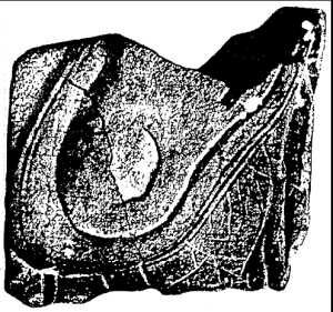 Часть окаменелой подошвы туфли, найденной в горной породе