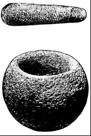Рудокопы стали обнаруживать каменные орудия – многие сотни! – а также человеческие кости. В одном из шурфов Столовой горы на глубине более 60 метров нашли каменную ступку и пестик – в слоях возрастом от 33 до 55 миллионов лет. Стали вести горизонтальный проход от вертикального шахтного ствола – и на глубине 55 метров нашли человеческую челюсть. На глубине 18 метров, в гравии, лежащем под твердыми базальтами – каменный топор.