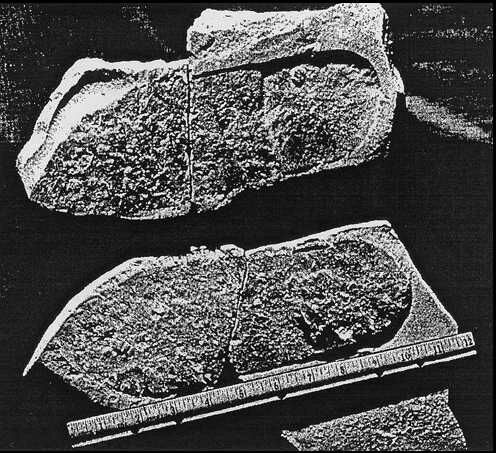 Дополнение: это во времена Рэйда считалось, что триасовый период имел место пять миллионов лет назад. По современным теориям, триас гораздо старше – как минимум 248 миллионов лет… Конец 20‑х годов XX века, США, Оклахома. По непроверенным сообщениям, рабочие шахты в городке Уилбертон рассказывали, что нашли в шахте слиток серебра «в форме бочонка, с отпечатками бочарной клепки», а также несколько отполированных бетонных блоков. В пластах каменного угля, возраст которого – не менее 300 миллионов лет.