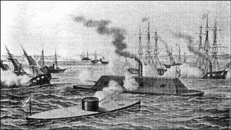 Получив известия об этом, северяне принялись лихорадочно строить свой броненосец «Монитор», но, прежде чем он успел добраться до театра военных действий, «Мерримак», переименованный в «Виргинию», успел себя показать…