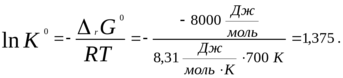Так как константа равновесия K0 1, реакция при T=700K протекает в прямом направлении практически необратимо.