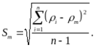 3.3. При контроле по образцам среднее квадратическое отклонение плотности бетона в партии Sm, кг/м3, при числе единичных значений плотности бетона более шести вычисляют по формуле