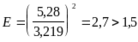 = 20,40 МПа; SR = 4,842 МПа; S = 3,506 МПа. Поскольку E = 1,9 >1,5 и