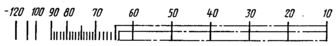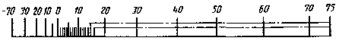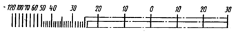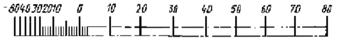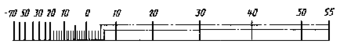 6. На шкале должно быть нанесено не менее трех оцифрованных отметок, в том числе обязательно на отметках, обозначающих начало и конец диапазона измерений. Как минимум, каждая десятая отметка шкалы должна быть оцифрована. Допускается оцифровывать каждую двадцатую отметку шкалы.