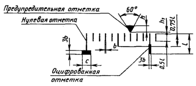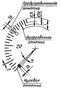 Предупредительная отметка должна находиться на одной из отметок шкалы.