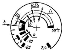 Допускается наносить числа отсчета в начале и в конце диапазона температурной шкалы.