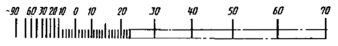 | От -0,1 до 0,9 (от - 1 до 9) | От - 70 до 20 | |