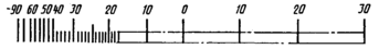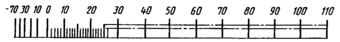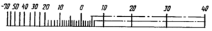 | Диапазон показаний | Пример разделения температурной шкалы на интервалы и нанесение числовых отметок для хладона NH3 | |