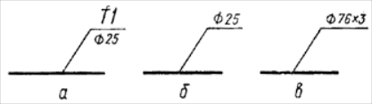 Для трубопроводов из стальных водогазопроводных труб указывают диаметр условного прохода (черт. 1б).
