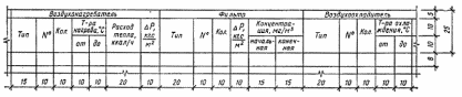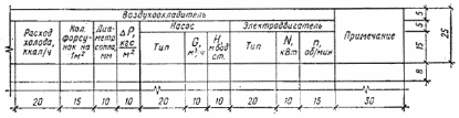 Если таблицу делят на части, то в начале каждой последующей части помещают графу “Обозначение системы”. В типовых проектах характеристику воздухонагревателей указывают для принятых проектом расчетных температур наружного воздуха.