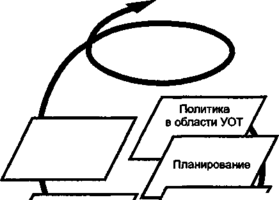 Методология создания и функционирования систем управления (менеджмента) по ряду направлений определяется общепризнанными международными стандартами ИСО серии 9000 (управление качеством) и ИСО серии 14000 (управление охраной окружающей среды). В основе методологии создания и функционирования систем управления, определяемой этими международными стандартами, положены известные принципы: «планируй — выполняй — контролируй — совершенствуй», реализуемые в рамках политики в рассматриваемом направлении деятельности. Модель такого подхода приведена на рисунке.