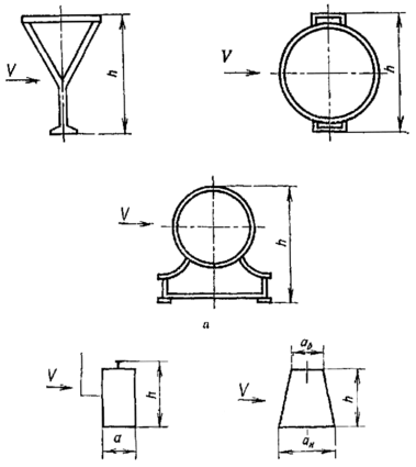 1.4. Некруглый (эллиптический, овальный и т.п.) цилиндрический стержень рассматривается как круглый, причем за величину d принимают поперечный размер стержня в плоскости, перпендикулярной направлению скорости ветра.