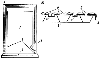 6 - вентиляционный короб; 7 - пилястра; 8 - стена