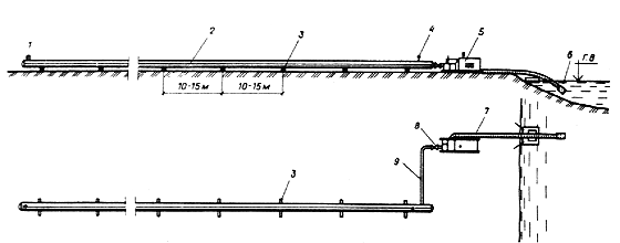1. Подготовка к работе насосной установки. 2. Присоединение шлангов для заливки трубопровода водой. 3. Заполнение трубопровода водой с помощью насосной установки и подъем давления до 1 МПа (10 кгс/см