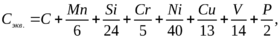 где С, Mn, Si, Cr, Ni, Cu, V, Р – массовые доли углерода, марганца, кремния, хрома, никеля, меди, ванадия и фосфора по результатам плавочного анализа (ковшовой пробы).
