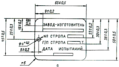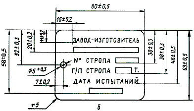 Рис. П2.1. Бирки маркировочные: а - для стропов грузоподъемностью до 3,2 т, б - свыше 3,2 т