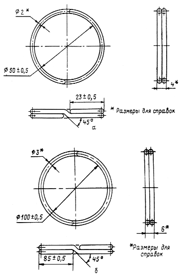 Размеры бирок и колец для стропов грузоподъемностью до 3,2 т приведены на рис. П.2.1, а и П.2.2, а, для сторопов грузоподъемностью свыше 3,2 т - на рис. П.2.1, б и П.2.2, б.