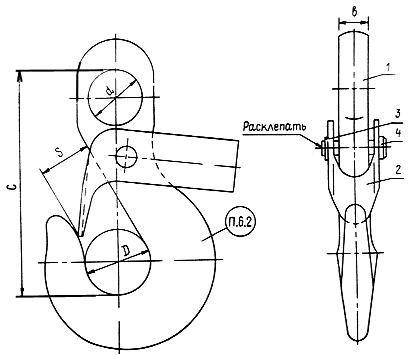 1 - крюк, 2 - замок, 3 - шайба, 4 - заклепка
