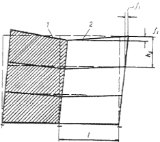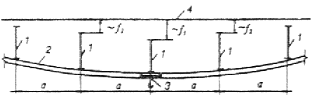 f1 — прогиб наиболее нагруженной стропильной конструкции; f2 — прогибы смежных с наиболее нагруженной стропильных конструкций