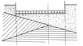 где b— угол растекания воды в стороны от источника замачивания, принимаемый равным для лёссовидных супесей и лёссов 35°, а для лессовидных суглинков 50° .