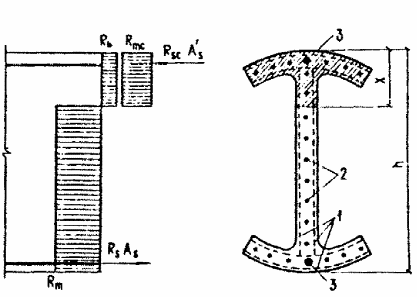 растягивающие напряжения в арматуре принимаются постоянными по высоте растянутой зоны сечения и не более Rm, Rs, Rsp.