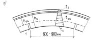 Ширину температурно-усадочного шва, вычисленную по формуле (64), следует увеличивать на 30 %, если шов заполняется асбестовермикулитовым раствором, каолиновой ватой или шнуровым асбестом, смоченным в глиняном растворе (черт. 8, а).