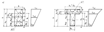 ybi — расстояние от центра тяжести i-той части сечения бетона до центра тяжести всего приведенного сечения, определяемое по формулам: