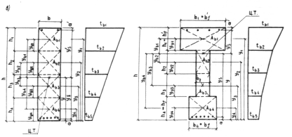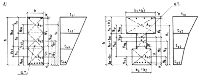 Черт. 1. Схемы разбивки на части высоты прямоугольного, таврового