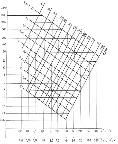 Черт. 4. Номограмма для определения секундных и часовых расходов воды