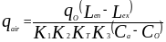 6.157. Удельный расход воздуха qair, м3/м3 очищаемой воды, при пневматической системе аэрации надлежит определять по формуле