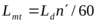 5. Расход воздуха Lmt от периодически работающих вентиляционных систем с номинальной производительностью Ld, м3/ч, приводится исходя из n, мин, прерываемой работа системы в течение 1 ч по формуле