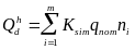 | где | - | сумма произведений величин Ksim , qnom и ni от i до т; |
