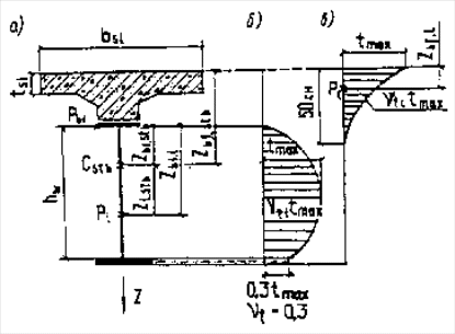 по подпункту «а» — с принятием по высоте стальной части сечения криволинейной эпюры разности температур (черт. 14, б) с ординатой в i-й точке