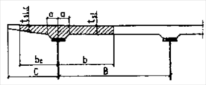 tsl, tsl,c - средняя толщина железобетонной плиты соответственно в пролете и на консоли (за вычетом ребра или вута);