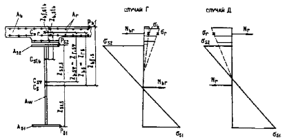 Черт. 17. Усилия и напряжения в сталежелезобетонном поперечном