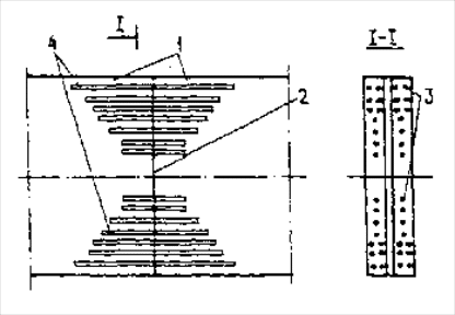 1 — стыкуемые блоки; 2 — стык блоков; 3 — отверстия для штырей; 4 — вклеенные в отверстия штыри