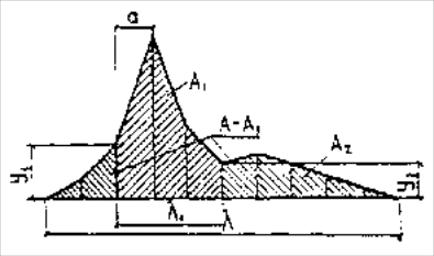Включающая вершину часть линии влияния длиной l1 и площадью A1 (черт. 2), ограниченная ординатами у1 и у2, загружается на максимум (в соответствии с l1 и a1); остальная часть линии влияния (А—А1) загружается нагрузкой 9,81К кН/м (К тс/м) пути.
