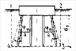 Проверку несущей способности подстилающего слоя грунта под фундаментом из свай или из опускного колодца следует производить как под условным фундаментом размерами, принимаемыми согласно обязательному приложению 25*.