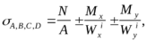 Wx, Wy — моменты сопротивления подошвы плотины для соответствующих угловых точек А, В, С и D относительно главных осей инерции, м3.