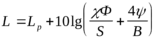 Ф – фактор направленности источника шума, безразмерный, определяется по опытным данным. Для источников шума с равномерным излучением звука следует принимать Ф = 1;