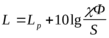 Первый член в формуле (6) следует определять, суммируя, уровни звуковой мощности источников шума Lрi по табл. 5, а если все источники шума имеют одинаковую звуковую мощность Lр0, то