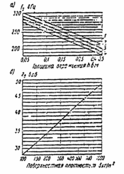– в зависимости от поверхностной плотности т в кг/м2 ограждающей конструкции (рис. 9. б).