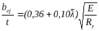 от 0,8 до 4 отношение расчетной ширины свеса поясного листа (полки) bef к толщине i следует принимать не более значений, определяемых по формулам табл. 29*.