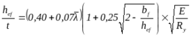 При значении сечения элемента по предельной гибкости, а также при соответствующем обосновании расчетом наибольшие значения hef /t следует умножать на коэффициент